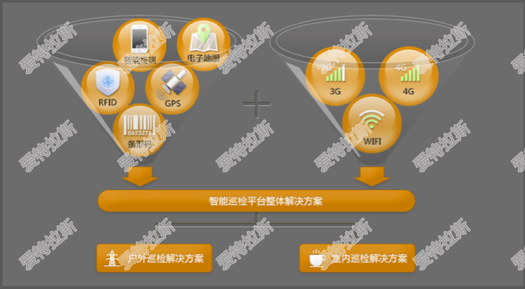 愛(ài)特拉斯智能巡檢平臺是一個(gè)綜合的智能信息應用平臺,采用移動(dòng)端/服務(wù)器端分布式架構和高速的網(wǎng)絡(luò )傳輸平臺,具有高效數據采集、處理和分析統計的功能。整合RFID、GIS/GPS、條形碼/二維碼、WIFI/3G/4G無(wú)線(xiàn)網(wǎng)絡(luò )、BPMN工作流等技術(shù)。將目前手動(dòng)、紙質(zhì)、開(kāi)環(huán)的巡檢管理流程改造成自動(dòng)、連續、閉環(huán)的運作模式,實(shí)現了巡檢人員與后臺管理系統的雙向交互。有效的降低了人為因素帶來(lái)的漏檢或錯檢等問(wèn)題,對巡檢過(guò)程進(jìn)行有效的監控及科學(xué)的管理,進(jìn)而極大提升巡檢工作的效率、質(zhì)量和和管理水平。